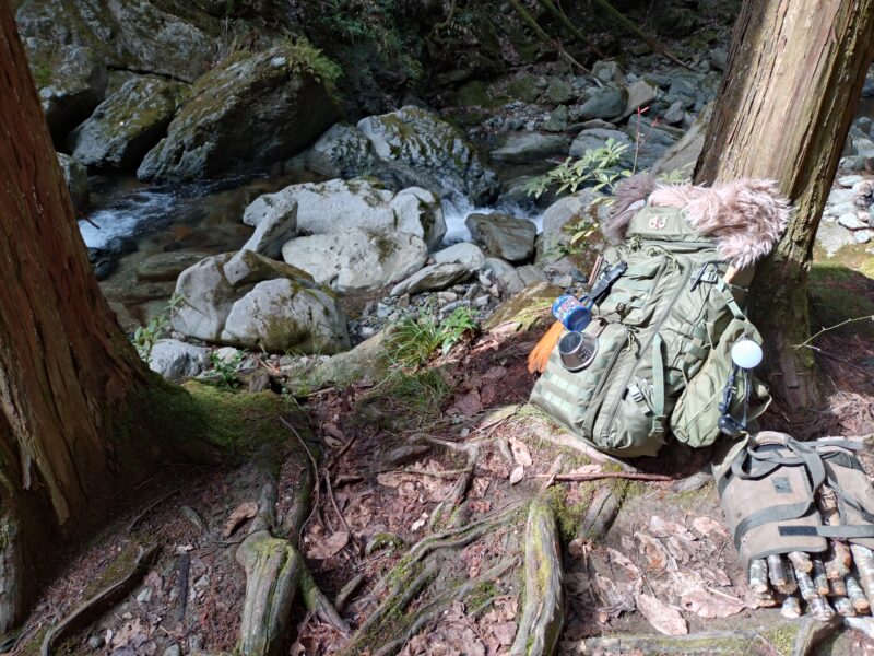 - ロケーション: 山の中、川近くでソロキャンプ! 付近には鹿のフンがポロポロ